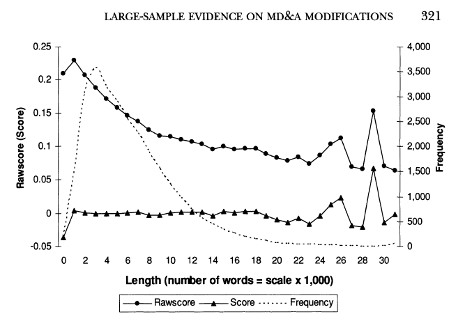 abstract의 내용은 이렇습니다. 첫번쨰로 , 경제적인 변화를 겪는 기업일수록 보고서 중 MD&A( 우리나라에선 '이사의 경영진단 및 분석')파트의 변화가 크다는 것입 니다. 이는 lazy prices(2019) 의 핵심 아이디어와 같습니다. 두번째로, MD&A의 변화량인 modification score에 investors는 반응했다면 analyst는 그렇지 않았다는 것입니다. 세 번 째로 MD&A의 길이가 시간이 지날수록 길어짐에도 불구하고 modification score에 따른 가격의 변화, MD&A가주는유의미한정보력은 감소하고 있다는것입니다.