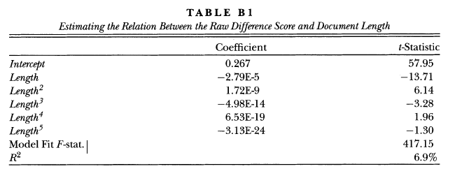 여기서는 difference score (not similarity)를 이용한다. Rawscore 은 단순히  전년 해와 올해의 difference score 측정을 통하여 구하는데 raw인 이유는 document length가 올라갈수록 score도 올라가기 때문이다. "We empirically approximate the functional form of the relation between Rawscore and document length by a Taylor expansion at 0".  테일러급수를 이용하여 정확히 어떻게했는지는 이해가 안가지만..