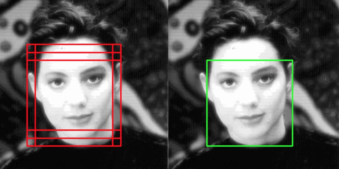 Bounding Box를 그린다 하더라도 여러개의 박스가 있을 것이고 겹치는 박스도 있다. 그 중 물체를 가장 잘 감지하는 박스를 찾아야 하기 때문에 IOU를 계산. 쉽게 말해 BB와 ground truth 박스와의 교집합을 계산하여 합집합으로 나눠 그 값이 가장 큰 박스를 사용하게 된다(Non-maximum suprresion)