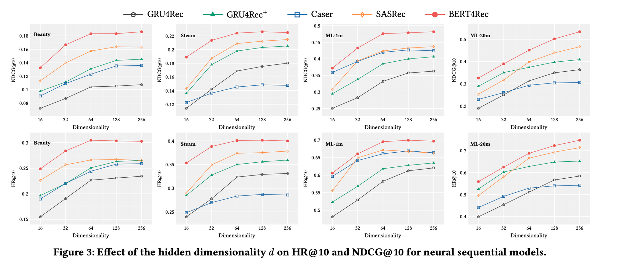 Dataset으로는 Steam , Beauty, ML-1m , ML -20m 을 사용했는데, 각 dataset간 사이즈나, user interaction sparsity의 차이가 있어서 이에 따른 파라미터 비교값을 잘 비교해봐야 할 것 같습니다.