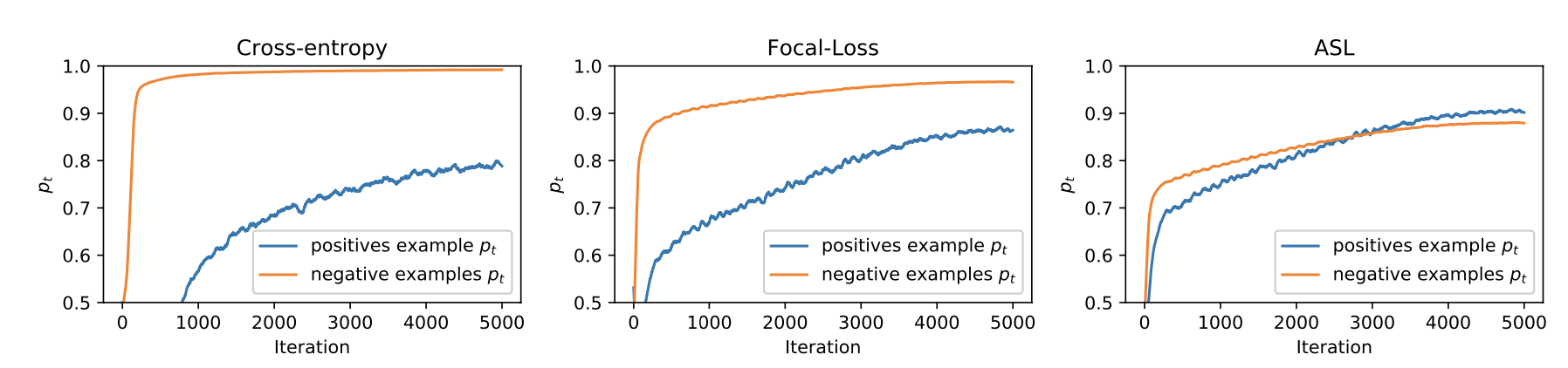 위의 focal loss 수식과 같지만 r+ ,r- 입니다. 항상 r- > r+ 로 설정하여, postive examples 의 decay rate를 다르게 학습시켜, 기존에 rare positive exmaples 이 제외되는 경우를 방지시키기 위함입니다.
