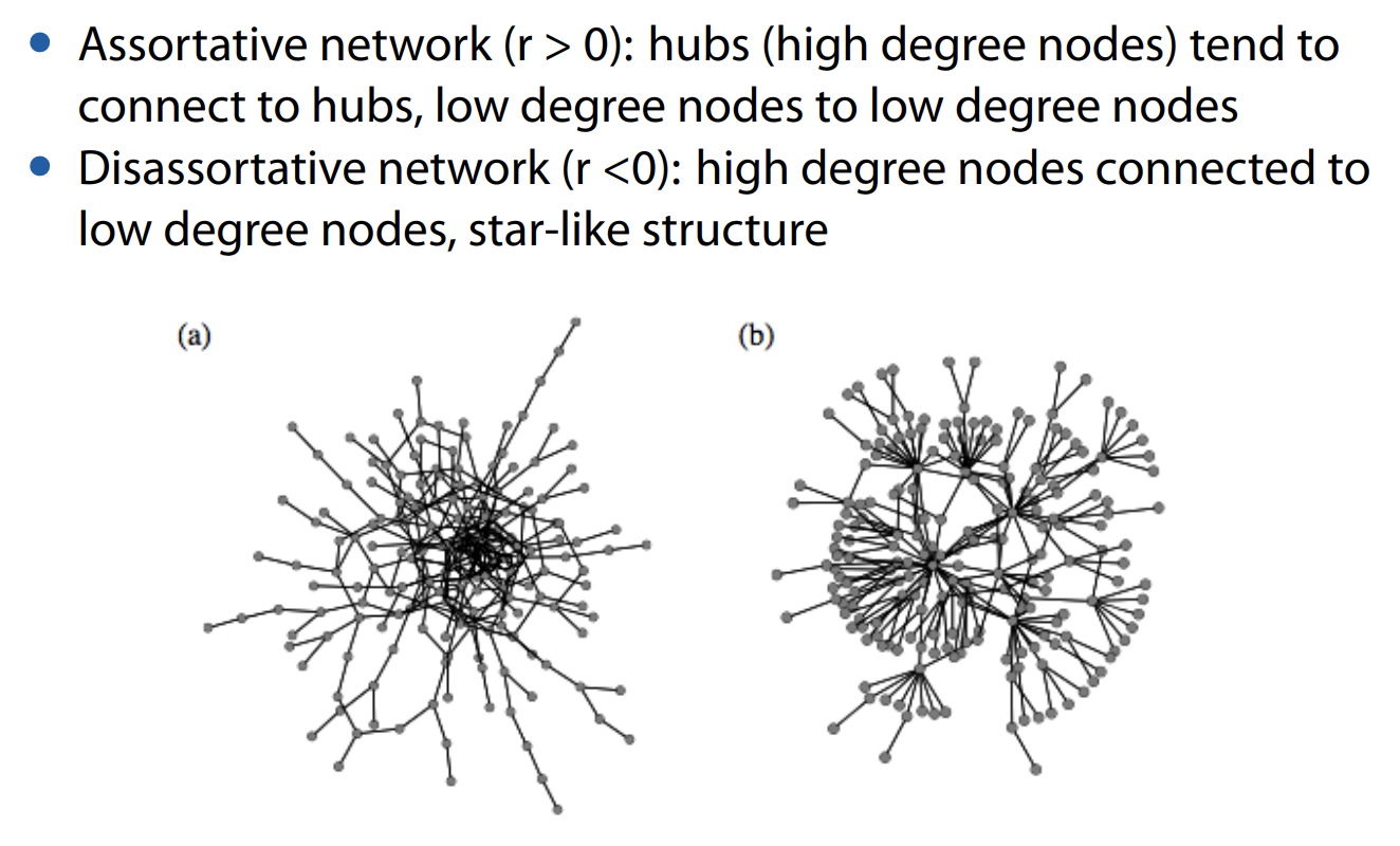 (b) Disassortative network는 degree correlation이 음수이고, star-like structure을 보인다