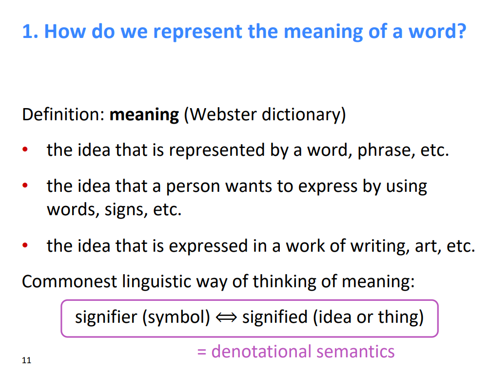 우리가 하려고 하는것은 단어의 의미(meaning)을 표현하는 것입니다.